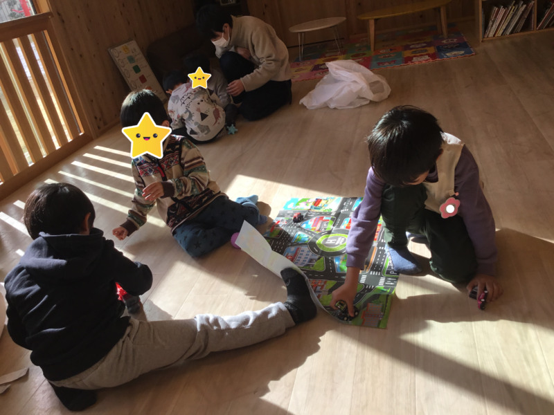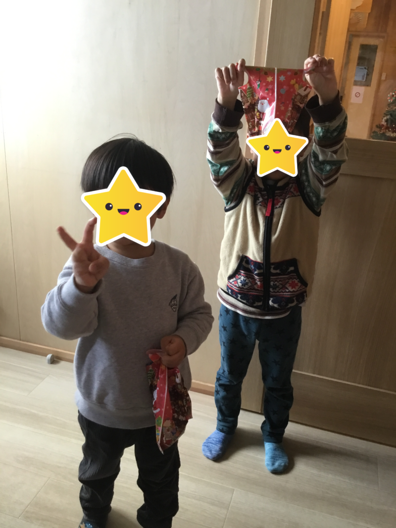 サンタさんからもらったプレゼントでみんな仲良く遊ぶことができました(^^)