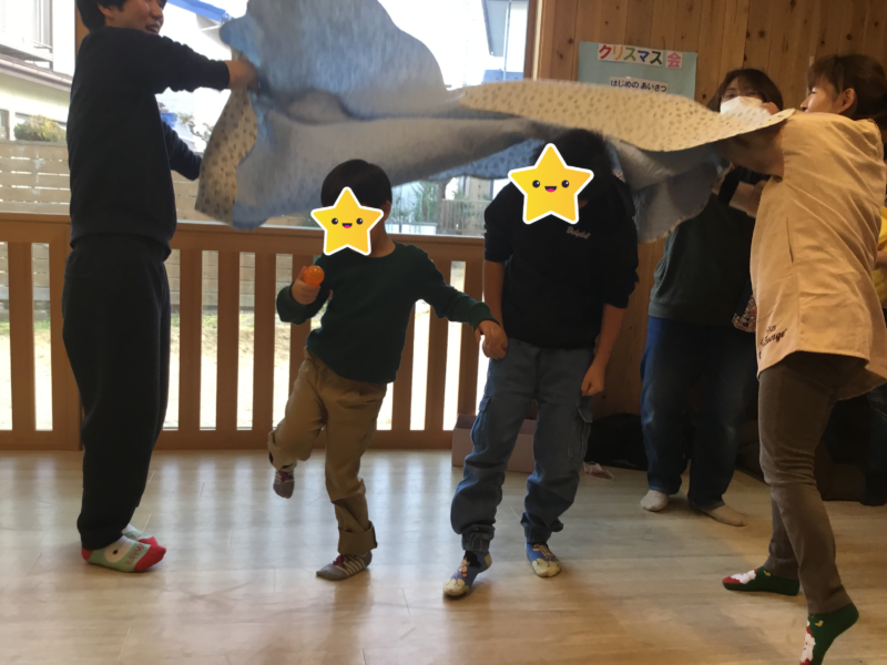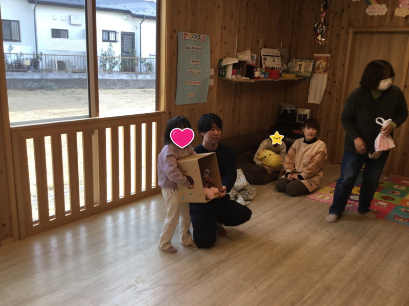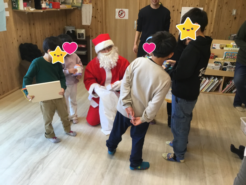 サンタさんが登場しプレゼントを受け取ると全員で「ありがとうございました!」