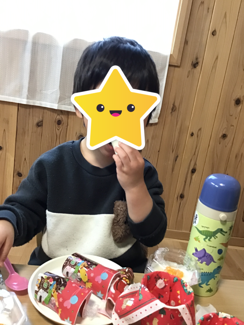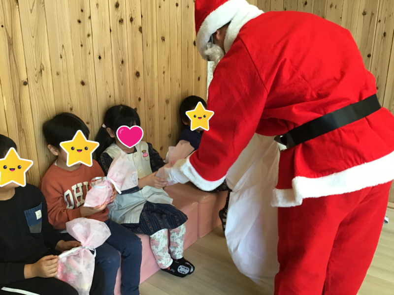 クリスマス会にはサンタさんに一人ひとりプレゼントをもらいました(^^)