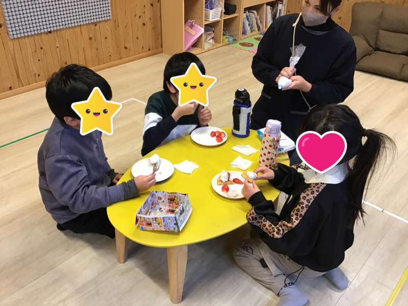 ビンゴゲームやクイズ大会をしたり、おやつ作りではパフェを作りました(^^)